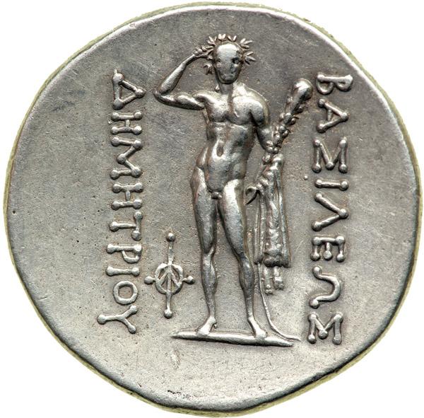 Kingdom of Baktria. Demetrios I, c. 200-185 BC. AR Tetradrachm (16.85 g). VF-EF