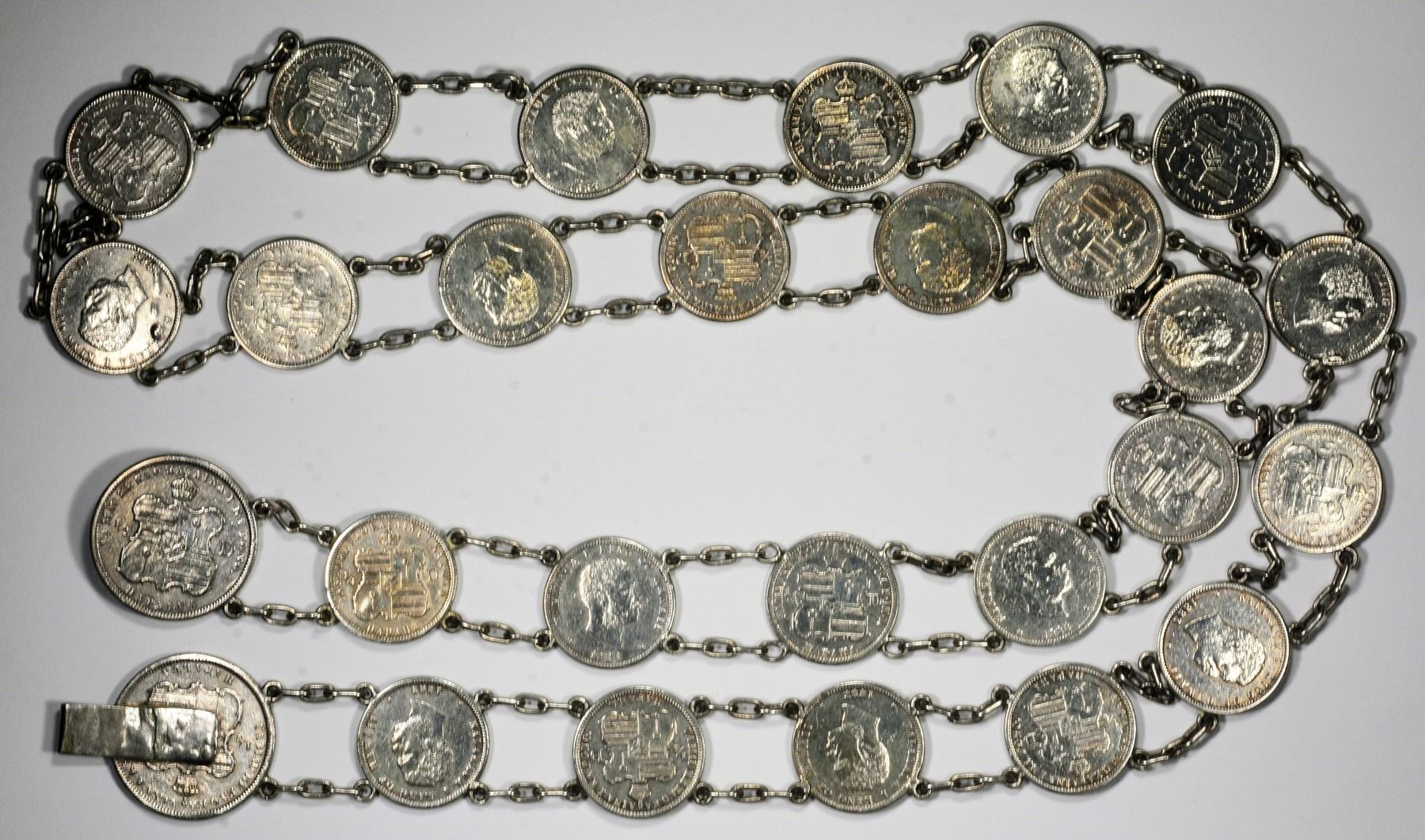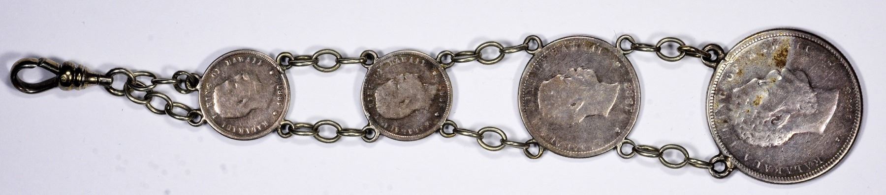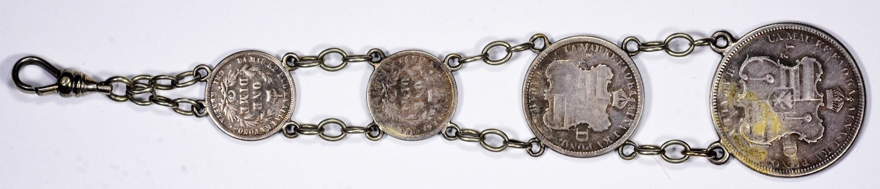 Title: Kingdom of Hawaii. Linked Silver Coins Belt and Watch Fob.