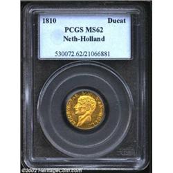 Kingdom of Holland. Gold Ducat 1810, KM38, MS62 PCGS, moderately abraded with good remaining luster.