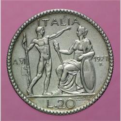 Kingdom of Italy Coins - Vittorio Emanuele III (1900-1946) - 20 L. Littore - 1927 - anno VI - Roma