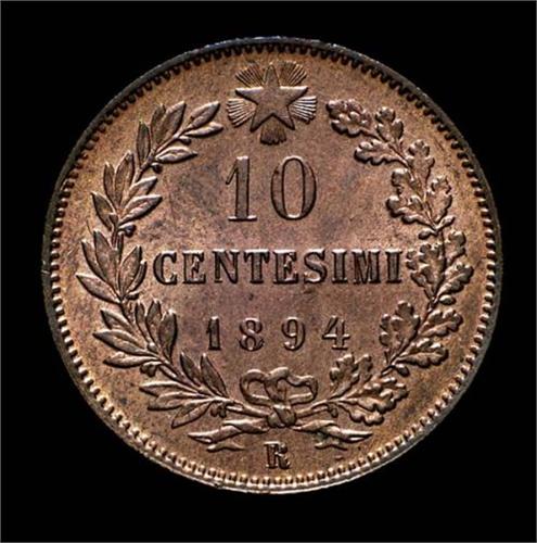Kingdom of Italy - Umberto I - 10 Centesimi 1894 Zecca di Roma - Di ottima qualità - Cu