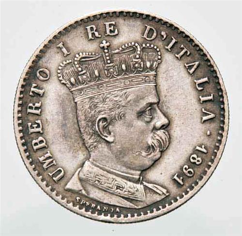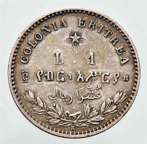 Regno d'Italia - Umberto I (1878-1900) - Colonie - Eritrea - 1 Lire 1891 - Metallo: Ag - Zecca: Roma - Diritto: effigie coronata del Re a destra - Rovescio: valore e leggenda trilingue fra stella e rami di alloro - Patina di medagliere