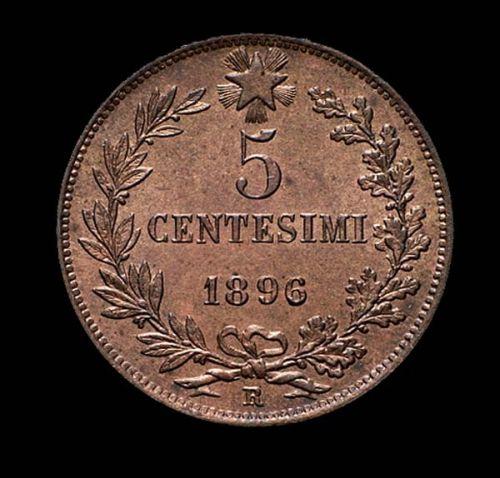 Kingdom of Italy - Umberto I - 5 Centesimi 1896 Zecca di Roma - Di ottima qualità - Cu