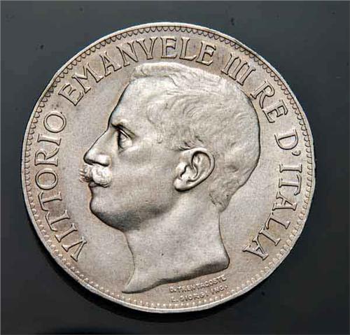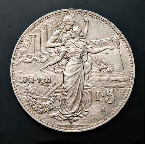 Regno d'Italia - Vittorio Emanuele III (1900-1946) - 5 Lire Cinquantenario 1911 - Metallo: Ag - Zecca: Roma - Diritto: effigie del Re a sinistra - Rovescio: allegoria dell'Italia e di Roma con una nave da guerra sullo sfondo - Colpetti ai bordi