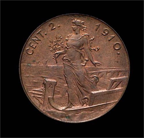 Kingdom of Italy - Vittorio Emanuele III - 2 c. Italia su Prora 1910 Zecca di Roma - Di ottima qualità - Cu