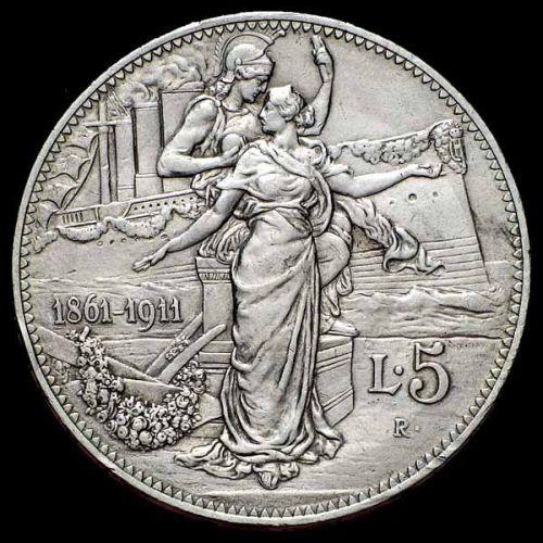 Kingdom of Italy - Vittorio Emanuele III - 5 Lire Cinquantenario 1911 Zecca di Roma - Colpetti ai bordi - Ag
