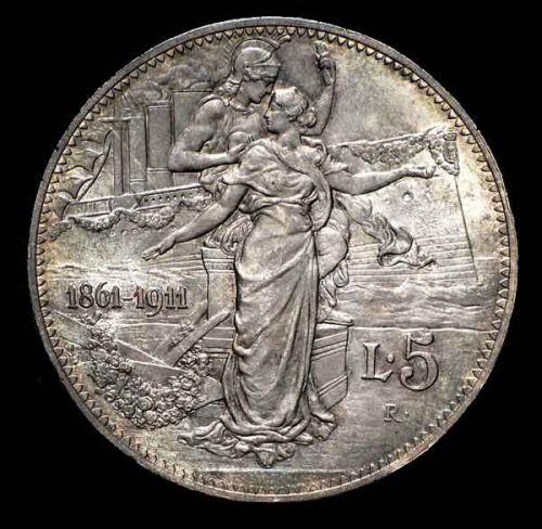 Kingdom of Italy - Vittorio Emanuele III - 5 Lire Cinquantenario 1911 Zecca di Roma - Ag