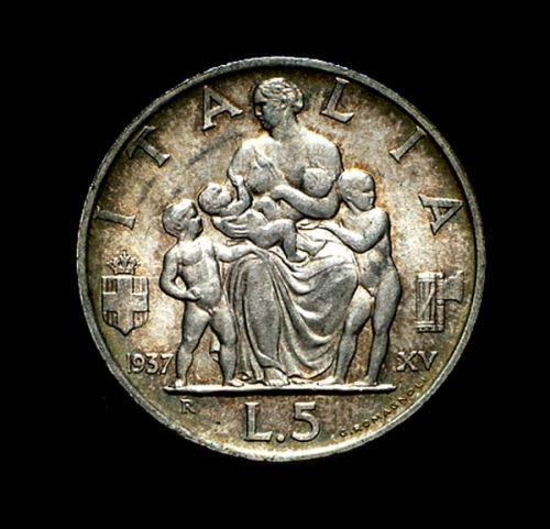 Kingdom of Italy - Vittorio Emanuele III - n. 5 del 5 Lire Famiglia 1937 Zecca di Roma - Millesimo non comune - Di buona qualitàr - Ag