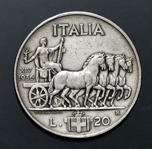 Kingdom of Italy - Vittorio Emanuele III - 20 Lire Quadriga 1936 Zecca di Roma - Ag