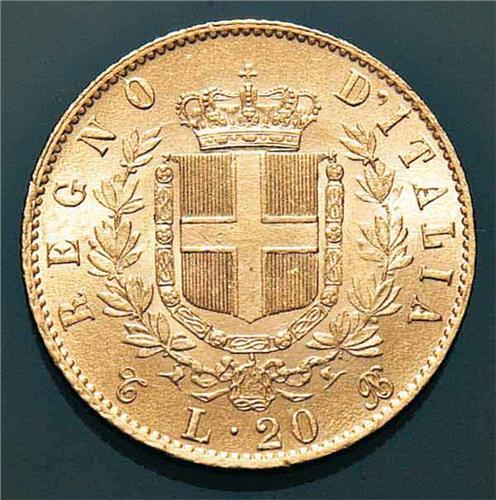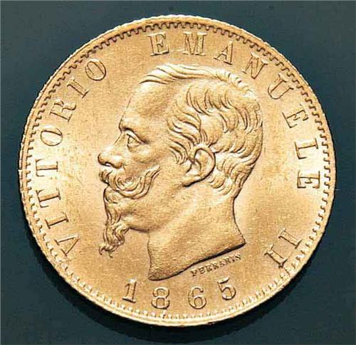 Regno d'Italia - Vittorio Emanuele II (1861-1878) - 20 Lire 1865 - Metallo: Au - Zecca: Torino - Diritto: effigie del Re a sinistra - Rovescio: stemma di Casa Savoia coronato e circondato dal Collare dell'Annunziata - Di ottima qualità
