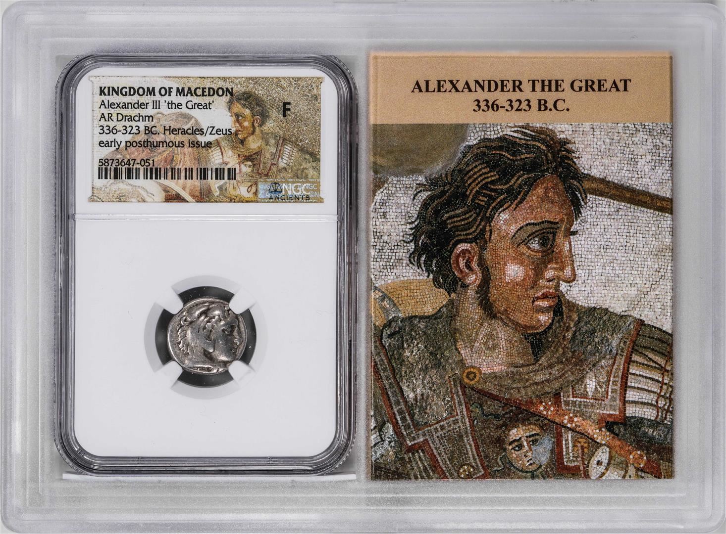 Kingdom of Macedon Alexander III 336-323 BC AR Drachm Ancient Coin NGC F Story Box