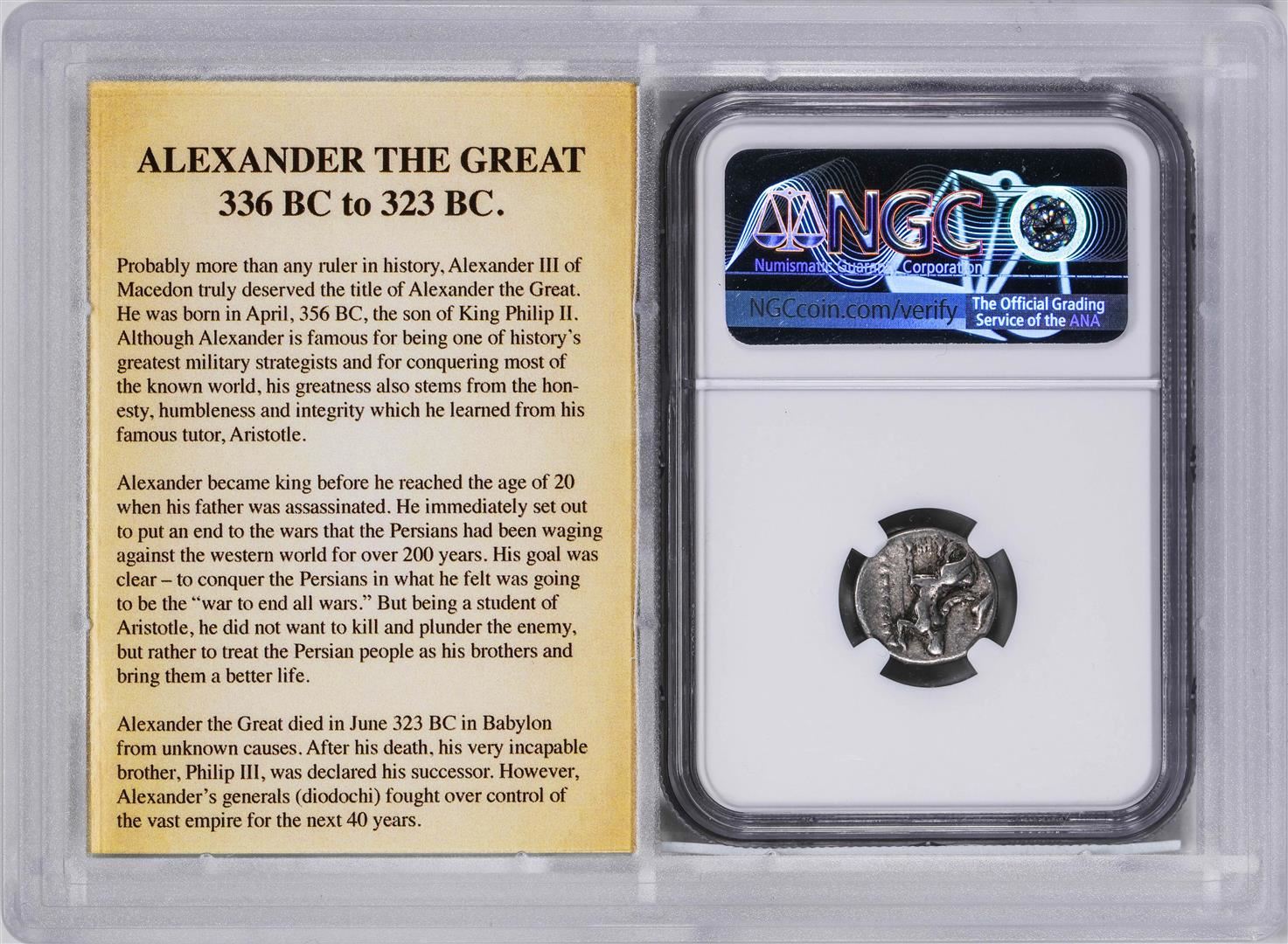 One Kingdom of Macedon Alexander III 336-323 BC AR Drachm Ancient Coin NGC F Story Box. NGC Certified.