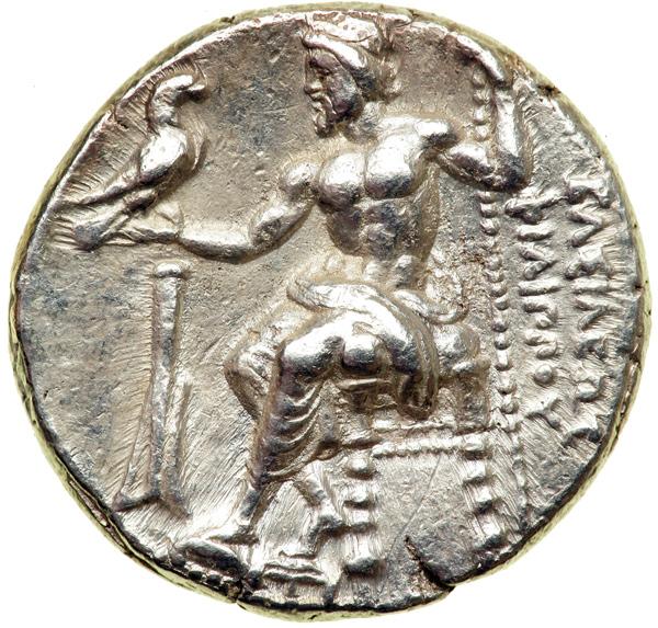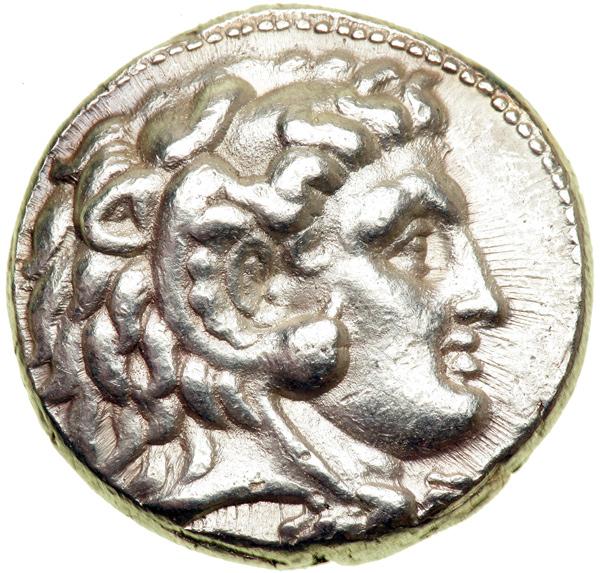 Kingdom of Macedon. Alexander III, 336-323 BC. AR Tetradrachm (17.11 g) probably minted under Philip III, c. 323-315 BC. Head right of young Herakles wearing lion's skin. Reverse: Zeus enthroned left, holding eagle and scepter; in left field, rudder. Price P129b (these dies); M. P80; SNG Oxford 3203. Nearly Extremely Fine. .