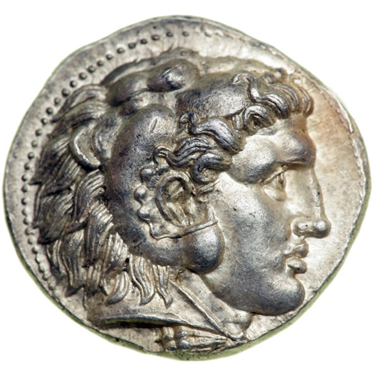 Kingdom of Macedon. Alexander III, the Great, 336-323 BC. AR Tetradrachm (17.09 g) attributed to Babylon, c. 317-311 BC. Head right of Herakles, wearing lion's skin headdress. Reverse: Zeus enthroned left, holding eagle and scepter; in left field, monogram within wreath; under throne, "H". Price 3704; M. 714. Of fine style and struck in ultra high relief. Underlying luster and of excellent metal. Nearly Mint State. .