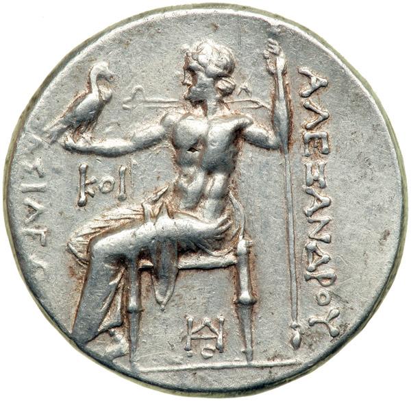 Kingdom of Macedon. Alexander III, the Great, 336-323 BC. AR Tetradrachm (16.81 g) minted posthumously at Odessos, before c. 240 BC. Head right of Herakles, wearing lion's skin headdress. Reverse: Zeus enthroned left, holding eagle and scepter; in left field, letters; under throne, monogram. Price 1170. Extremely Fine.
