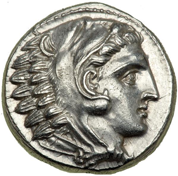 Kingdom of Macedon. Alexander III, the Great, 336-323 BC. AR Tetradrachm (17.28 g) minted posthumously at Amphipolis, c. 320-317 BC. Head right of Herakles, wearing lion's skin headdress. Reverse: Zeus enthroned left, holding eagle and scepter; in left field, dolphin; under throne, monogram. Price 133; M. 542. Fully lustrous and boldly struck. Mint State. .