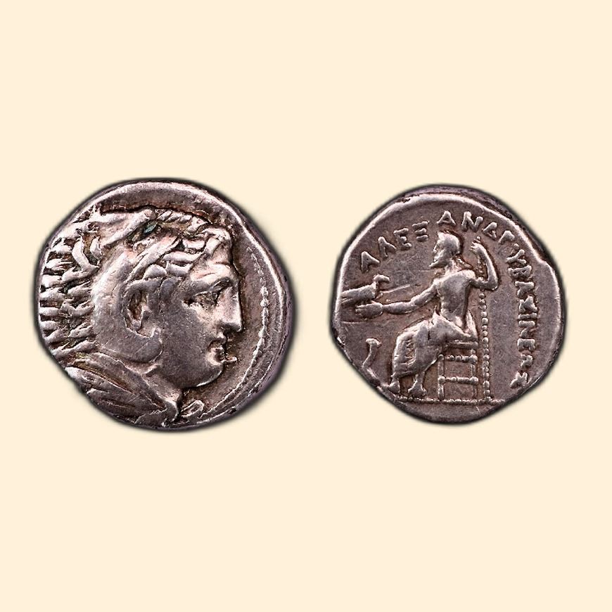 Ancient World, Kingdom of Macedonia, In the name of Alexander III , Amphipolis (c. 323-320 BC), Silver Tetradrachm, 16.97gms, OBV: Head of young Herakles facing to right wearing lion’s skin, REV: Zeus holding an eagle and sceptre, sitting to left on a throne, Greek legend behind.