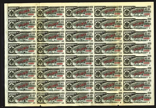 Norway. $1000 Gold Coupon Bond Specimen. ABNC. VF+