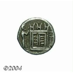 Kingdom of Persis. Ardaxsir I. Ca. 1st half of 2nd century B.C. AR hemidrachm (12 mm, 1.93 g). Persepolis. Diademed head right, wearing kyrbasia (satrapal cap) / King standing before altar right; standard to right. Alram 525; BMC p. 199, 4. Toned VF. Rare. Important notice: Heritage usually auctions material at the rate of 200-250 lots per hour. On some occasions eBay Live bid software or the Internet may not be able to keep up with the pace of the auction. We recommend placing a realistic absentee bid now as insurance to avoid disappointment. Occasionally the auctioneer may eliminate or reject an eBay Live bid, and the auctioneer may also reopen a lot after the close of the eBay live bidding (usually because we missed an audience bid), and may reject your bid even if it shows you as the winning bidder. By bidding via eBay Live, you agree that Heritage may award the lot to another bidder at its sole discretion under the circumstances described above or any other reasonable circumstances. Also please note that all Heritage lots purchased through eBay Live carry a 20% Buyer's Premium. Please make sure you read the Terms and Conditions before you bid.