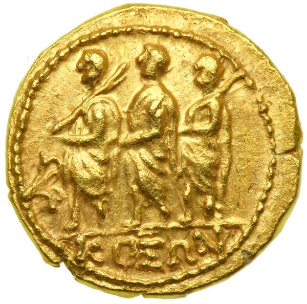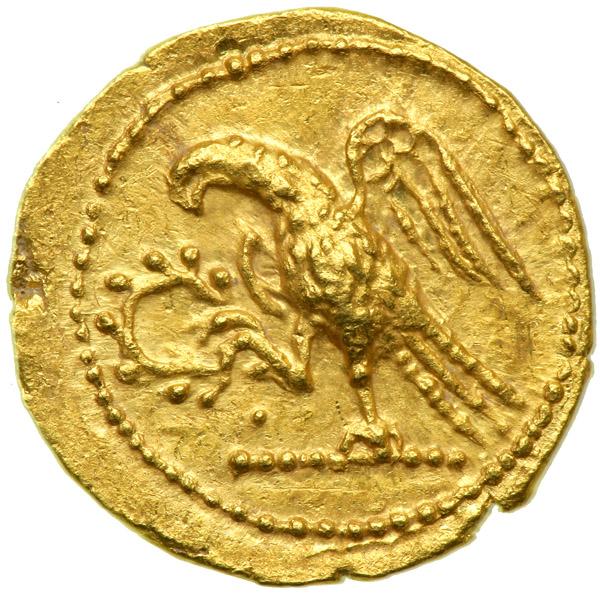 Kingdom of Thrace. Koson, died c. 29 BC. Gold Stater (8.73 g) minted c. 40-29 BC. Consul between lictors, all togate, advancing left. Reverse: Eagle standing left on scepter, holding wreath in one claw. SNG Cop 123; Dewing 1245. Lustrous; Virtually Mint State.
