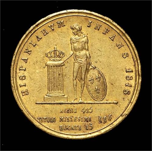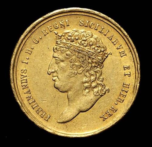 Regno delle due Sicilie - Ferdinando I già IV Re di Napoli (1816-1825) - 15 Ducati 1818 Zecca: Napoli - Diritto: effigie del Re a sinistra - Rovescio: genio stante poggia la destra su una colonna coronata e la sinistra su uno scudo con l'emblema dei Borboni - Non comune