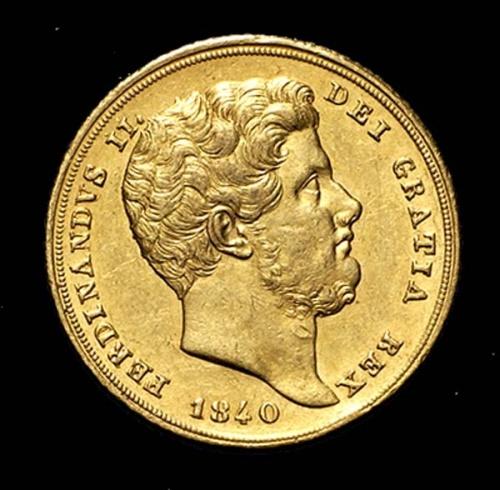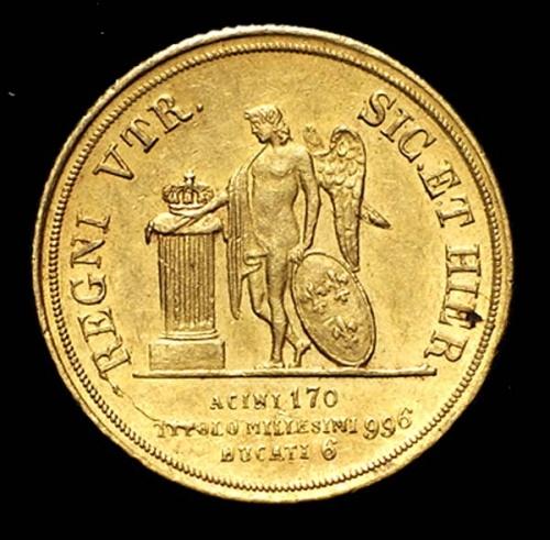 Regno delle due Sicilie - Ferdinando II (1830-1859) - 6 Ducati 1840 Zecca: Napoli - Diritto: effigie del Re a destra - Rovescio: genio alato stante a sinistra poggia la destra su una colonna coronata e tiene con la sinistra uno scudo con l'emblema dei Borboni - Non comune e di buona qualità