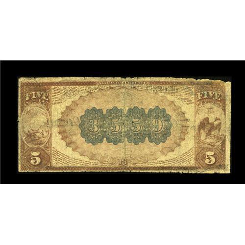 <B>Kingman, KS</B></I> - $5 1882 Brown Back Fr. 469 <B>The Kingman NB</B></I> Ch. # 3559<BR>A newly discovered note from this excessively rare bank which issued Brown Backs only. The Kelly census shows only one note extant from here (which has never been offered at public sale), no surprise as this bank was in existence for a mere four years and had but $370 outstanding in 1915. It is well circulated, but with nice pen signatures. Intact <B>Good-Very Good,</B></I> easily likely to see bidding reach or exceed...<BR><BR><b>Shipping:</b> Coins & Currency (<a target="_blank" href="http://www.heritageauctions.com/common/shipping.php">view shipping information</a>)