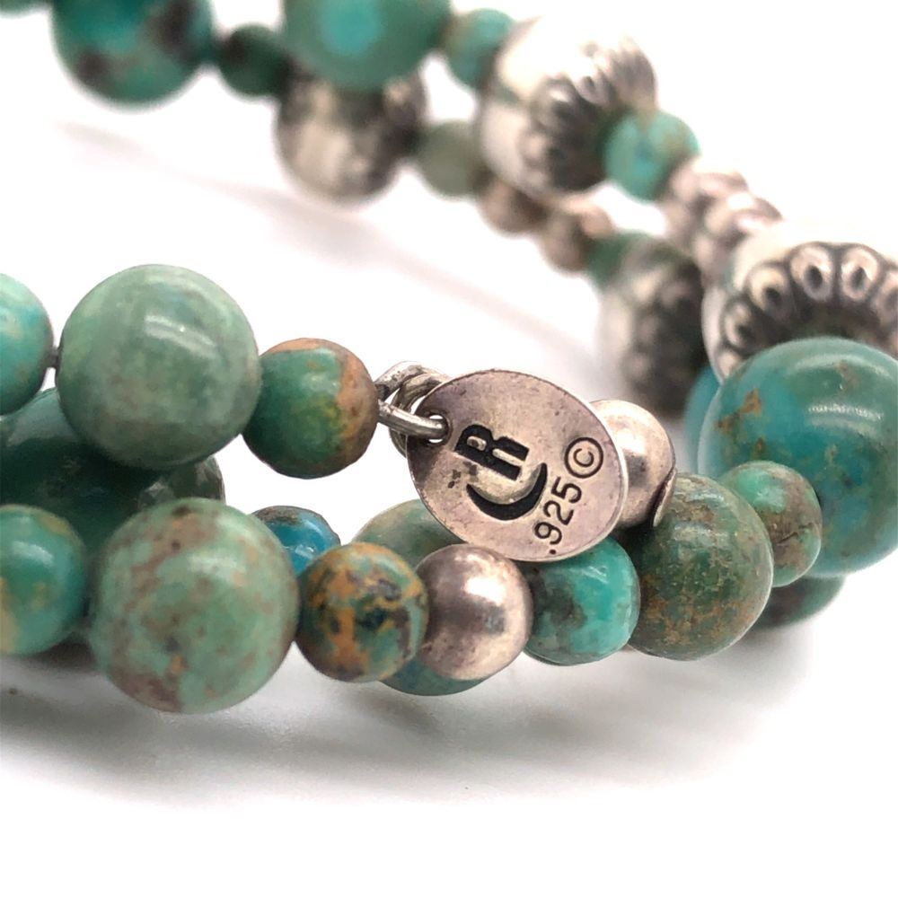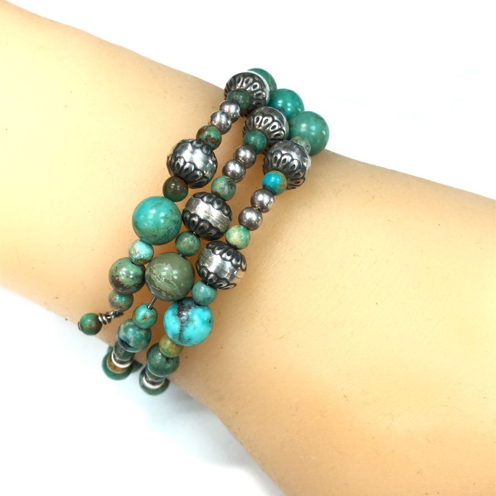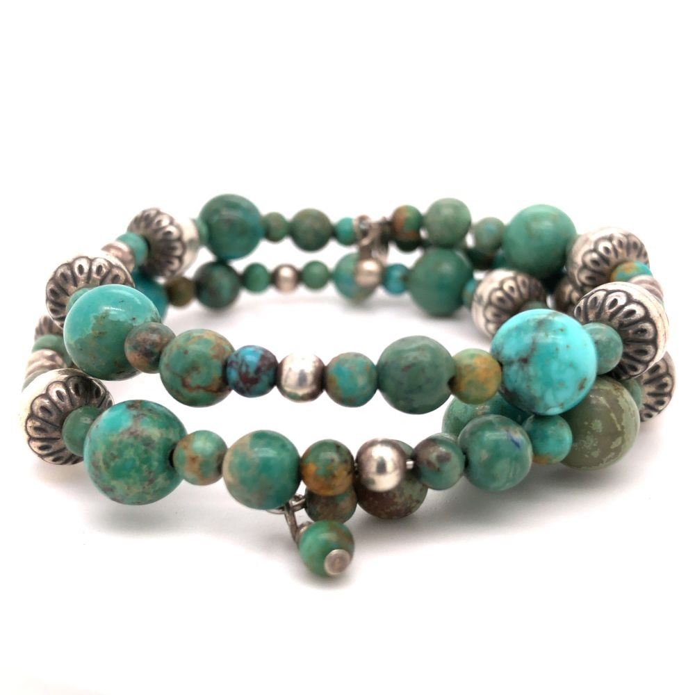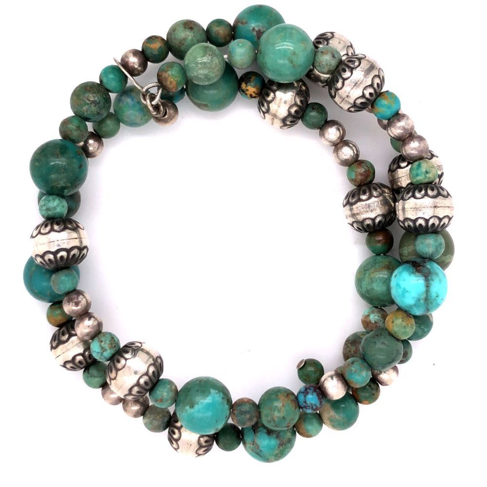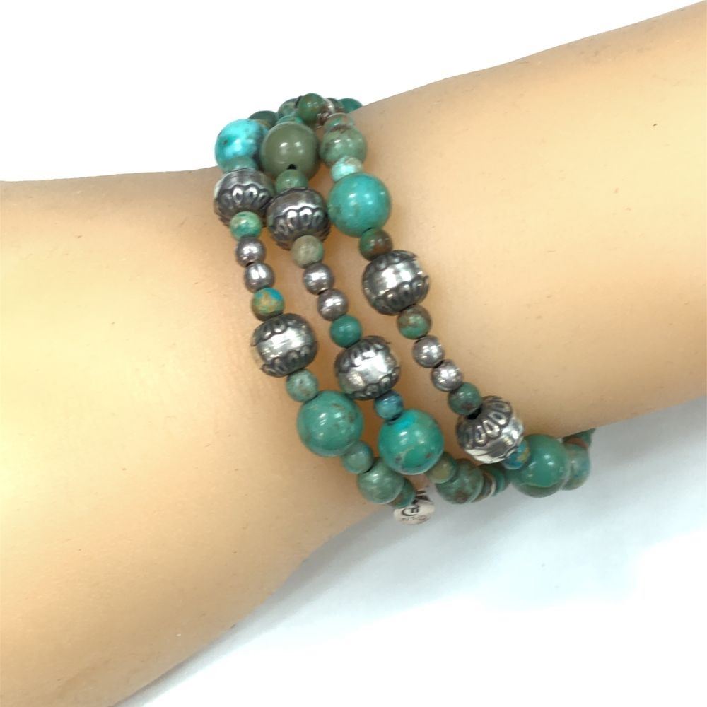 AAA Kingman Turquoise sterling silver benchmade Navajo Pearl Wrap Bracelet Size 7 1/4 " adjustable W 1 "