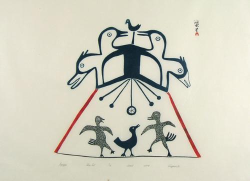 [Canadian, Cape Dorset 1915-1989] EYUGRO; 1974 Colour stonecut on paper; Ed. #1/50 22.25 x 30.75 ins. Signed, titled, dated & editioned Bears traditional stamp