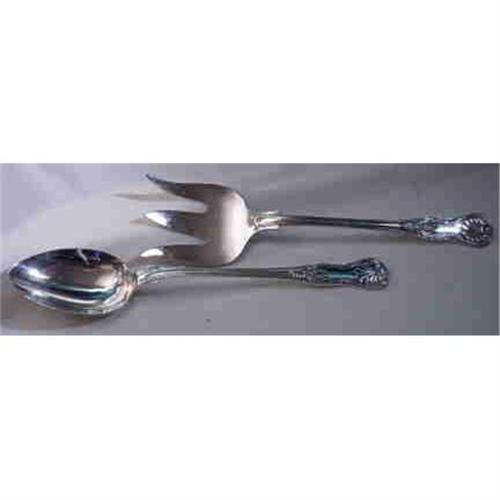 Wonderful buffet size Kings Pattern Salad Servers. 12" long and 3" at the widest point on the fork. The shell pattern is on the back of each where the handle meets the body. Slight normal use scratches, non deep. Marked on the back, "W.A. EPNS (Electro plated nickel silver) Made in Sheffield England"