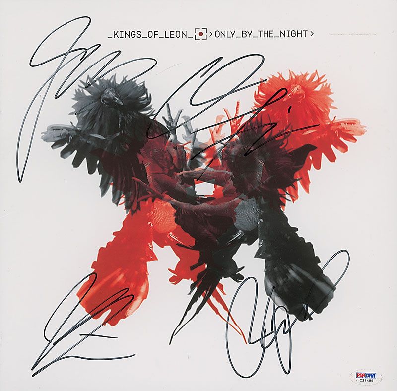 Only by the Night album signed on the front cover in black felt tip by Caleb, Jared, Matthew, and Nathan Followill. In fine condition, with a PSA/DNA authentication label affixed to lower corner. The record is included. Accompanied by a full letter of authenticity from Roger Epperson/REAL and a certificate of authenticity from PSA/DNA.