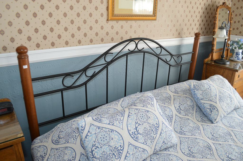 Kings size wood and wrought iron motif headboard