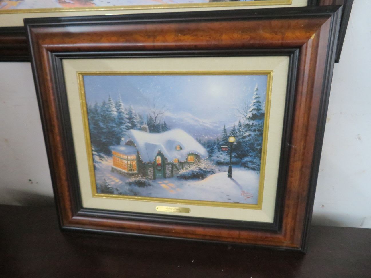 Kinkade Framed Print On Board Silent Night w/COA - 15 x 18