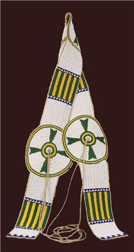 Kiowa/Apache Blanket Strip. 59 ½” long with 6 ½” medallions. Looks new but definitely old. 19th Century. Fine condition. (est $3,500-5,000)