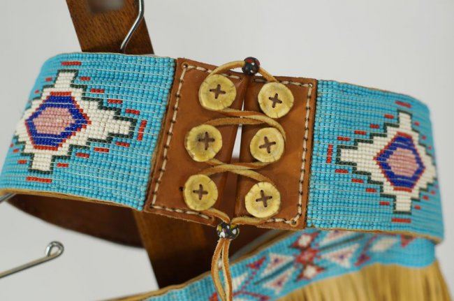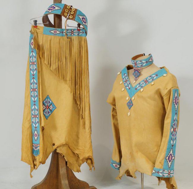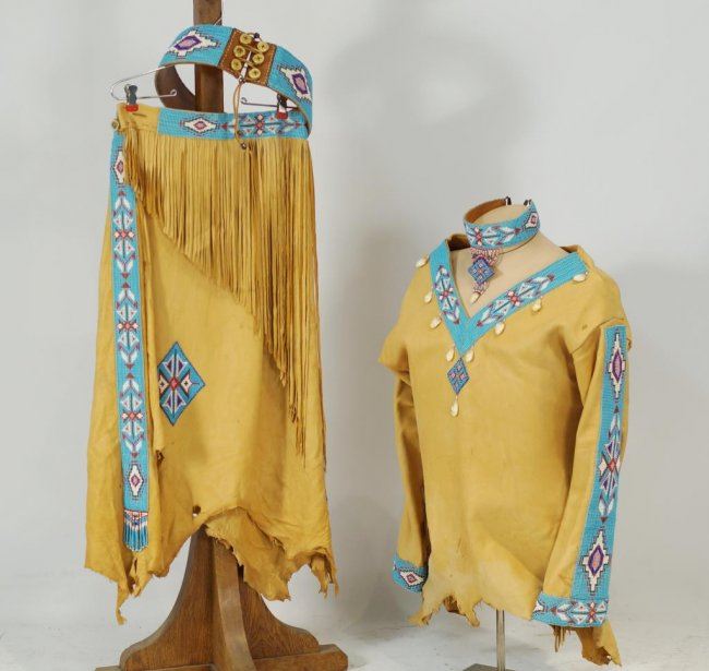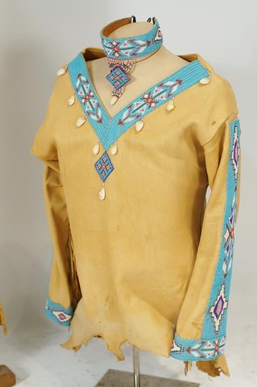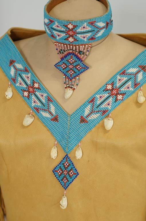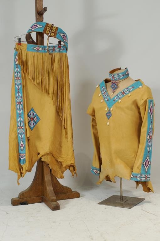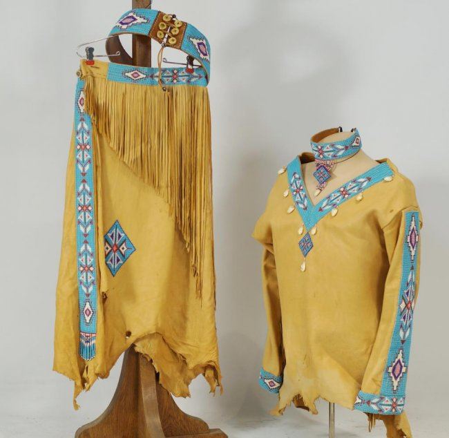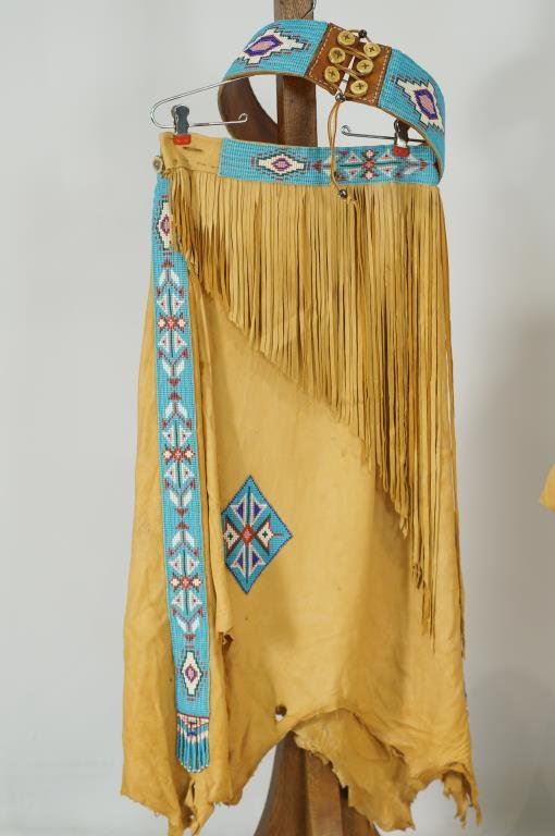 with belt, necklace, antler buttons, elk teeth - top and skirt