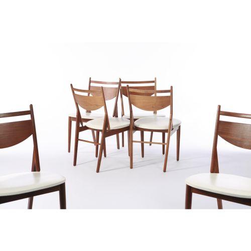 Artist Name: Kipp Stewart<BR>Manufacturer: Glenn of California<BR>Description: Group of 6 side chairs<BR>Circa: designed circa 1968<BR>Medium: <BR>Signature: Retains upholstery tag "Glenn of California, Arcadia"<BR>Measurements: 31.75"h x 17.25"w x 18.5"d