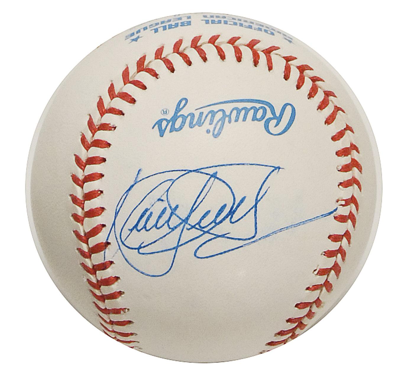 Official Rawlings American League baseball signed in blue ballpoint on a side panel. In fine condition, with a couple fingerprint brushes to signature.