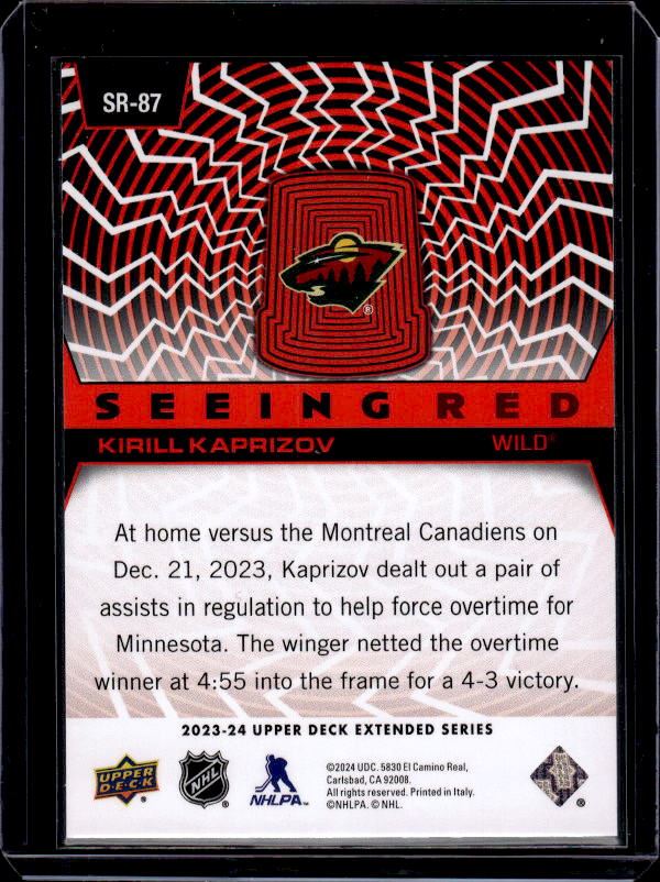 Kirill Kaprizov Seeing Red 2023-24 UD Extended Series #SR-87