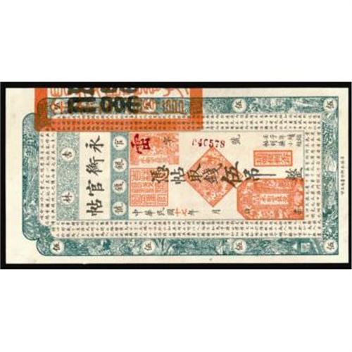 <style type="text/css"> body, td, th { font-family: Arial, Helvetica, sans-serif; font-size: 12px; color: #482424; margin: 0px; padding: 0px; } #header { background-image: url(http://www.bowersandmerena.com/ebay/images/template_v3_01.gif); clear: both; background-color: #590303; border-top-width: 2px; border-top-style: solid; border-top-color: #B38C4F; } #header #header_wrapper { height: 75px; clear: both; width: 800px; margin-right: auto; margin-left: auto; background-image: url(http://www.bowersandmerena.com/ebay/images/template_v3_03.gif); background-repeat: no-repeat; background-position: right; color: #F3EDCC; } #header #header_wrapper #header_logo { float: left; height: 75px; width: 444px; background-image: url(http://www.bowersandmerena.com/ebay/images/template_v3_02.gif); background-repeat: no-repeat; font-size: 10px; text-transform: capitalize; color: #B38C4F; } #header #header_wrapper #header_right { float: left; height: 75px; width: 356px; text-align: right; } #header #header_wrapper #header_right #headerLoginBtn { margin-bottom: 30px; } #header #header_wrapper #header_right input#txtSearch { color: #B49056; border: 1px solid #B49056; width: 175px; padding-top: 3px; padding-right: 3px; padding-bottom: 4px; padding-left: 3px; } #nav { height: 37px; background-image: url(http://www.bowersandmerena.com/ebay/images/template_v3_05.gif); clear: both; } #nav #nav_wrapper { height: 35px; width: 800px; margin-right: auto; margin-left: auto; border-left-width: 1px; border-left-style: solid; border-left-color: #B38C4F; } #nav #nav_wrapper a { padding-right: 15px; padding-left: 15px; border-right-width: 1px; border-right-style: solid; border-right-color: #B38C4F; height: 25px; padding-top: 10px; display: block; float: left; text-decoration: none; font-weight: bold; color: #5D0303; } #nav #nav_wrapper a:hover { color: #B38C4F; } #nav #nav_wrapper #search { float: right; padding-top: 7px; } #nav #nav_wrapper #search #txtSearch { font-family: Arial, Helvetica, sans-serif; font-size: 10px; text-transform: uppercase; color: #D2AE75; border: 1px solid #B38C4F; padding: 3px; } #content_bgd { background-image: url(http://www.bowersandmerena.com/ebay/images/template_v3_09.gif); background-repeat: repeat-y; background-position: center; padding-top: 15px; padding-bottom: 15px; background-color: #FBFBDB; } #content_wrapper { clear: both; height: auto; width: 800px; margin-right: auto; margin-left: auto; } .LotDetailWhite { line-height:normal; font-size:13px; font-family: arial,helvetica,sans-serif; color: White; font-weight: bold; } .LotDetailInformation { line-height:normal; font-size: 13px; font-family: arial,helvetica,sans-serif; } .LotDetailMessage { line-height:normal; font-size: 13px; font-family: arial,helvetica,sans-serif; color: red; } } tr.HeaderAuctionTitle td { color: #000000; font-weight: bold; padding: 2px; background-image: url(http://www.bowersandmerena.com/ebay/images/template_v3_05.gif); background-repeat: repeat-x; border-bottom-width: 1px; border-bottom-style: solid; border-bottom-color: #B38C4F; } table.AuctionSummary a, table.AuctionSummary a:link, table.AuctionSummary a:visited { color: #0000FF; text-decoration: none; } } td.tableHeaderLeft { border-left-width: 1px; border-left-style: solid; border-left-color: #B38C4F; } td.tableHeaderRight { border-right-width: 1px; border-right-style: solid; border-right-color: #B38C4F; } td.tableCellMiddle { border-left-width: 1px; border-left-style: solid; border-left-color: #B38C4F; border-right-width: 1px; border-right-style: solid; border-right-color: #B38C4F; padding: 5px; } tr.footer td { border-top-width: 1px; border-top-style: solid; border-top-color: #B38C4F; } </style> </head> <body> <div id="header"> <div id="header_wrapper"> <div id="header_logo"> </div> <div id="header_right"> </div> </div> </div> <div id="nav"> <div id="nav_wrapper"> <a href="http://www.bowersandmerena.com">Our eBayLive Auctions</a> <a href="#PaymentInfo">Payment Information</a> <a href="#ShippingInfo">Shipping Information</a> <a href="#About">About Bowers and Merena</a> </div> </div> <div id="content_bgd"> <div id="content_wrapper"> <table width="100%" border="0" cellpadding="5" cellspacing="0" class="AuctionSummary"> <tbody> <tr class="HeaderAuctionTitle" style="height: 25px;"> <td align="left" class="tableHeaderLeft" > </td> <td align="center" class="tableHeaderRight"> <span style="font-size: large;">Lot #536. Provincial Banks. Kirin Yung Heng Provincial Bank, 1917-18 Issue.</span> </td> </tr> <tr> <td colspan="3" class="tableCellMiddle"> 1917-18, 5 Tiao, P-S985, Choice Uncirculated condition. Extremely attractive note with ornate border design in green. Possibly finest known for this issue. BEPK.