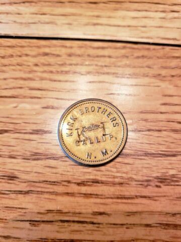 Kirk Brothers was a supply house for traders created by Mike and his brother John, known as Dude. It was created to offer traders an alternative to CN Cotton. CN Cotton in Gallup was the main supply house to Navajo traders. Tokens from this facility could use at any store dealing with the wholesale supply house. Both Cotton and Kirk were located on the north side of Gallup. The KB stamp indicates the token was redeemed. In the late 50s, my dad, John W Kennedy purchased the Kirk building and created Gallup Indian Trading Company. Mike Kirk was an important, long-time trader in Gallup and Manuelito, 23 miles west of Gallup. He was prominent in business and community affairs. In 1922 he led a group of Gallup businessmen to form the Gallup Intertribal Indian Ceremonial Association, which was created to show appreciation by Gallup businesspeople for the economic support of the Navajo and Zuni Indians. For 100 years, the Ceremonial has set the highest bar for quality Indian arts and crafts. Mike was a founder of the United Indian Traders Association in 1931. That was a collation of reservation traders that initially focused upon marketing of Indian arts and crafts. In the 60s, the association began, by necessity, to focus upon the intrusion of reservation traders by various agencies and groups to protect trader leases and operations. The Manuelito store built in 1910 and was named by the Navajos, Kin Hócho'o (ugly house). Mike expanded to a retail location at the El Fidel Hotel in Albuquerque in 1932. Later, in the 1970s, businesses in that area were forced to relocate when I-40 was developed. The new interstate also wiped out his Manuelito store as well as the Gallup location. Mike was a popular and skilled trader. Other traders came to his supply business because of his reputation, and his Manuelito store was a mainstay for years. Mike lived in Gallup and commuted to his store in Manuelito. He had a large home and entertained many famous artists and entertainment personalities, including Will Rogers. I grew up next door to the Kirk home. His concrete tennis court was a great play area for neighborhood kids. In the 70s, his home was remodeled into four large apartments and still stands.