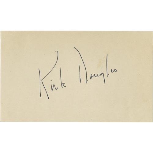 <B>Kirk Douglas Autograph.</B></I> A 3" x 5" notecard signed by the legendary actor in black ink, in Very Fine to Excellent condition with mild tanning.<BR><BR><b>Shipping:</b> Flat Material, Small (<a target="_blank" href="http://www.heritageauctions.com/common/shipping.php">view shipping information</a>) <BR><BR><B>Important n
