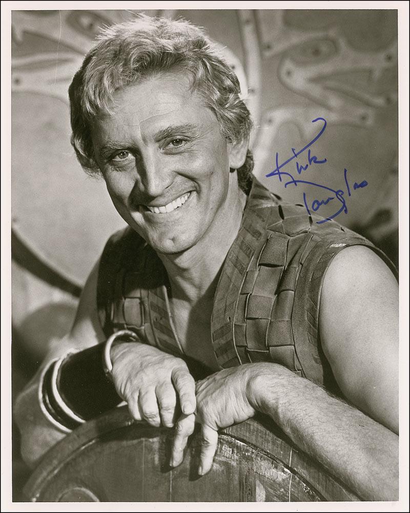 Handsome satin-finish 8 x 10 photo, signed in blue felt tip “Kirk Douglas.” In fine condition with corner dings.