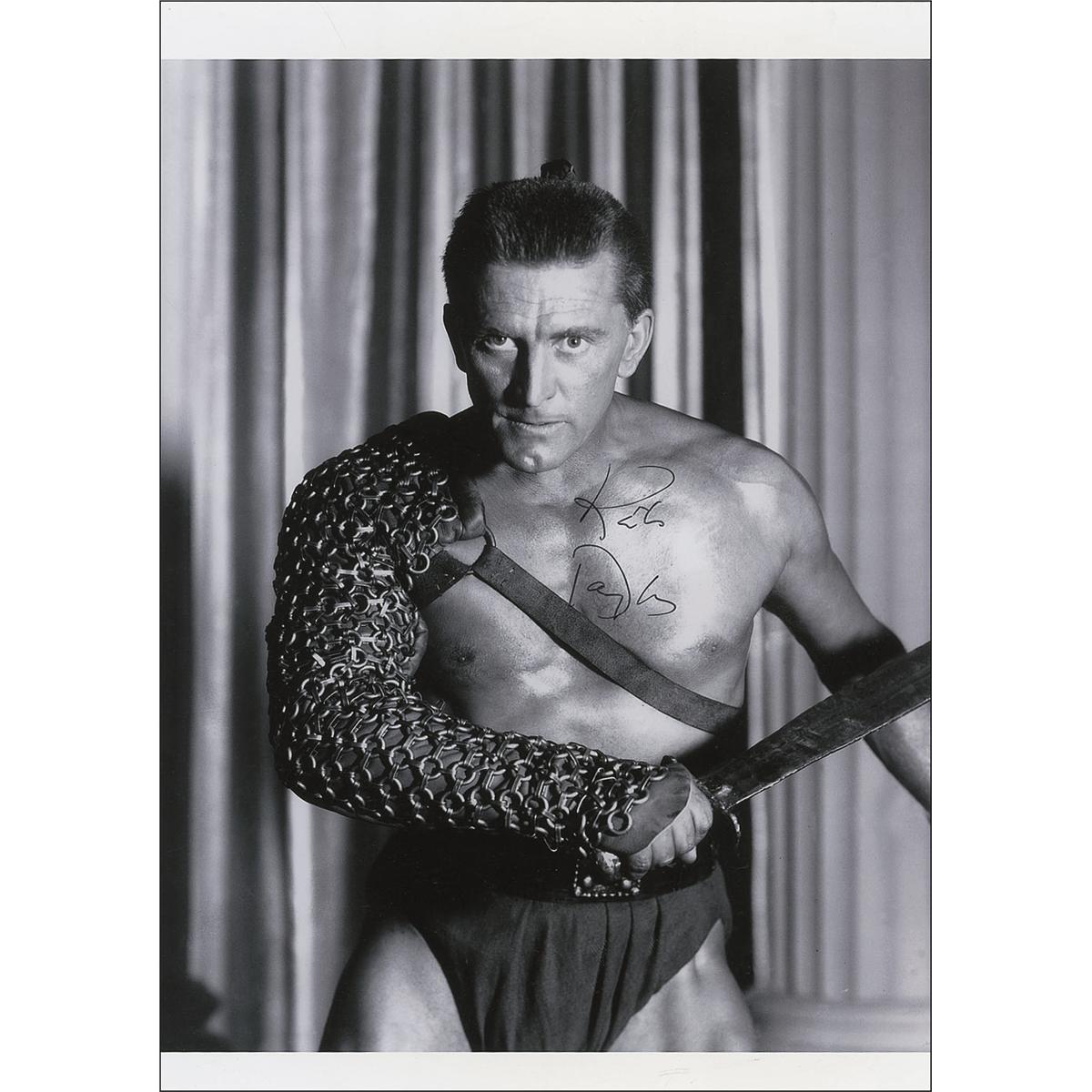 Glossy 10 x 14 photo of Douglas, intense and barechested from Spartacus, signed in black felt tip. In fine condition, with trivial surface marks and impressions.