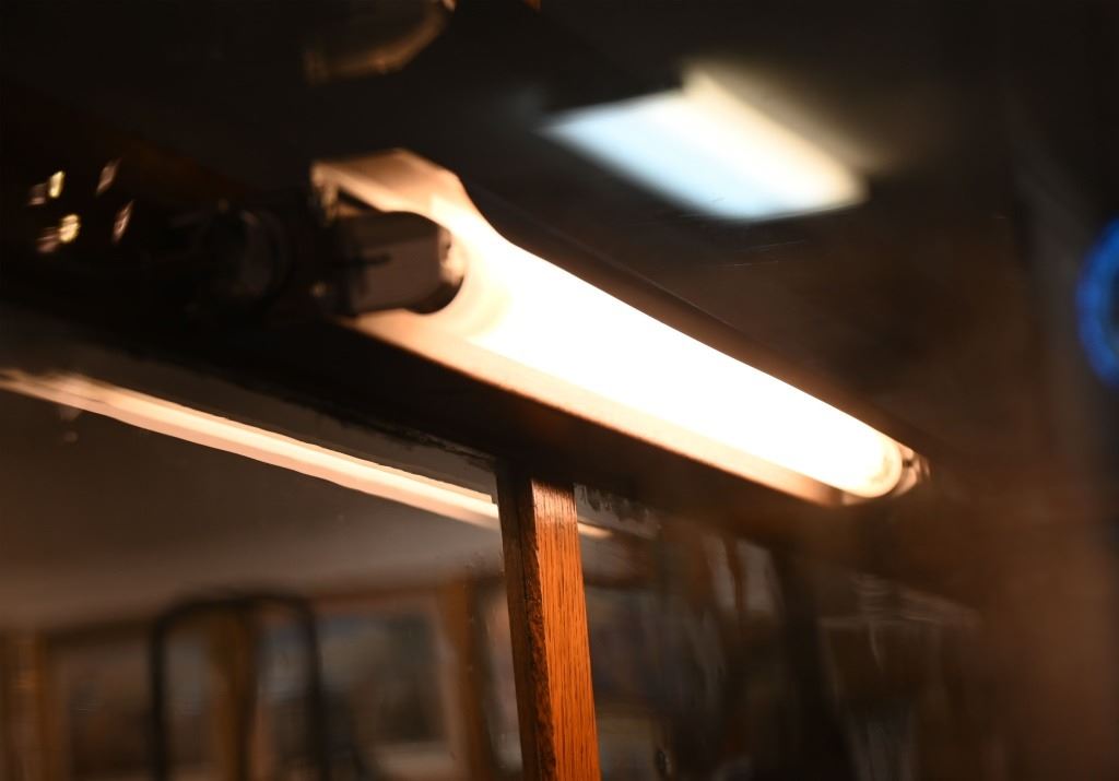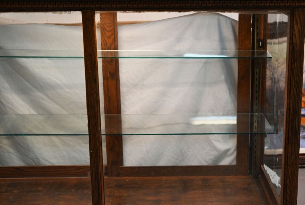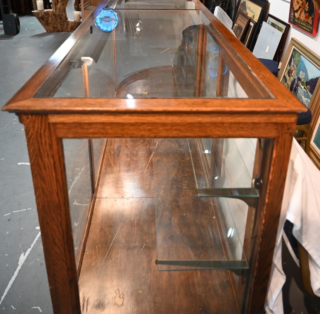 Circa 1910. Lighted oak display case, measures 26" 42" x 97.5"