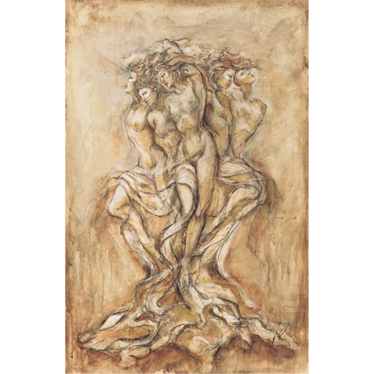 Her technique involves the blending of her focal characters into merged backgrounds, abstracting the often dancing figures onto their stage. In recent years her work has become incredibly popular and a delight for the individual and experienced framer.