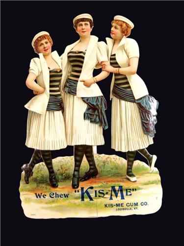 Kis-Me Gum Die Cut Embossed Sign. Repair to heads at necks otherwise excellent condition. 7 X 9 1/2 inches.