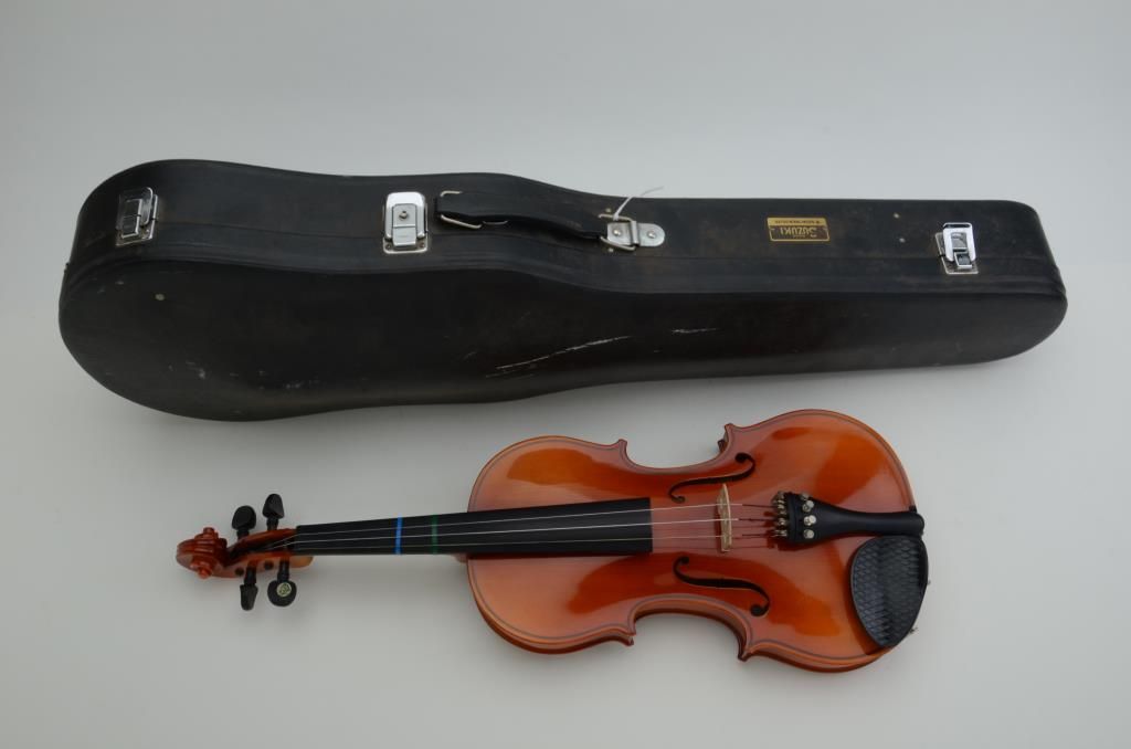 Kiso Suzuki 4/4 size violin, 1970’s era in very good condition with case in what appears to be overall very good condition; needs re-stringing. Est.: $100-$150.