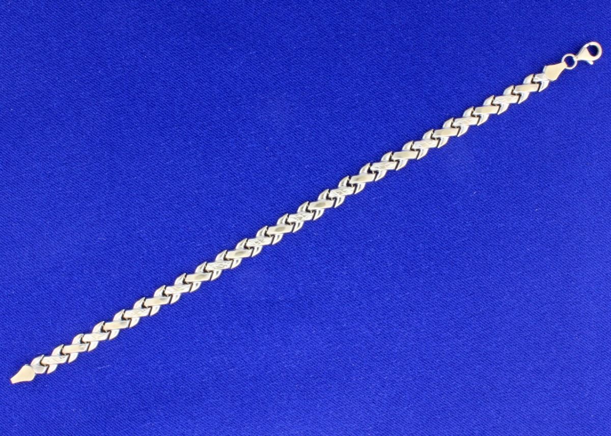 In 10k white gold X style bracelet with lobster clasp. 7 1/8 inches long.   4.3g