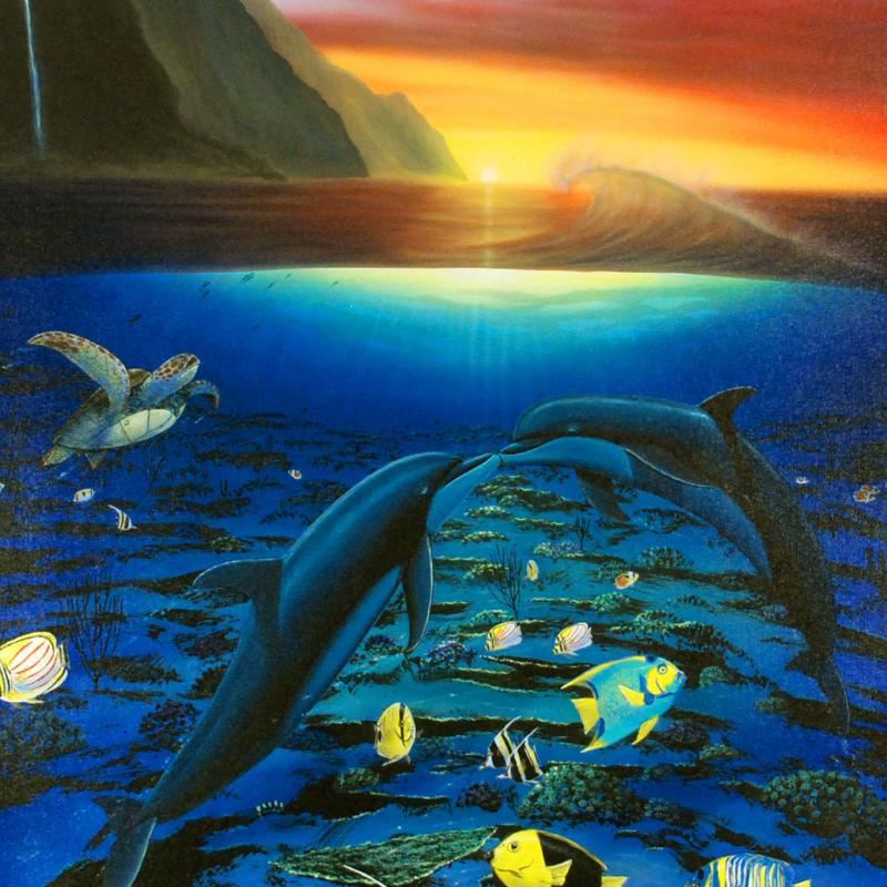 Wyland's boundless love of nature is clearly conveyed in each of his works with exacting detail. "Kiss for the Sea" is a limited edition giclee on canvas, numbered and hand signed by Wyland! Includes Certificate of Authenticity! Measures approx. 30" x 40" (image).