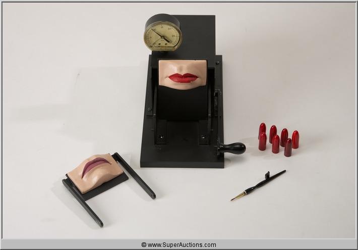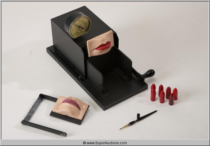 Max Factor Collection, Kissing Machine / (1) Lipstick Brush / (7) Lipstick Inserts / The Kissing Machine is damaged and does need repair.